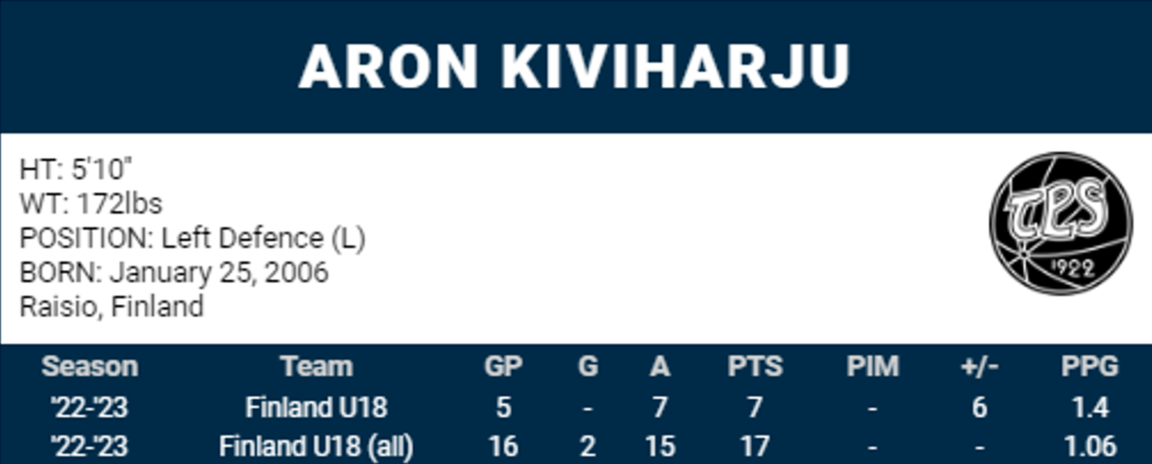 Scouting Report: Kiviharju is a slightly undersized transitional defenceman who quarterbacks the power play. He’s an excellent skater, elusive on the offensive blue line, and jumps to space effectively on defence. Kiviharju has the look of an “offenceman” -- a combination forward/defender. In time he will need to add more strength to assist with coverage when having to stand up physically to bigger opponents in the trenches.