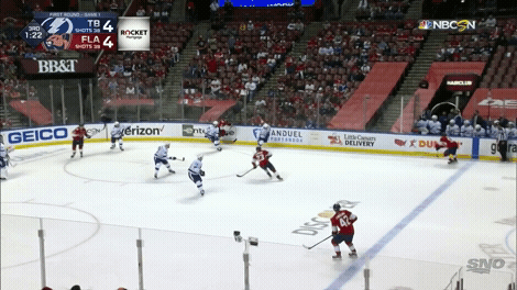 The opener of this series was called the “game of the season” by some because it was so frantic and back and forth. In the end, that’s what bit the Panthers. MacKenzie Weegar’s shot here got blocked in front, his partner was pinching in for offence and the Lightning, also leaning offence, were able to spring Point on a breakaway.