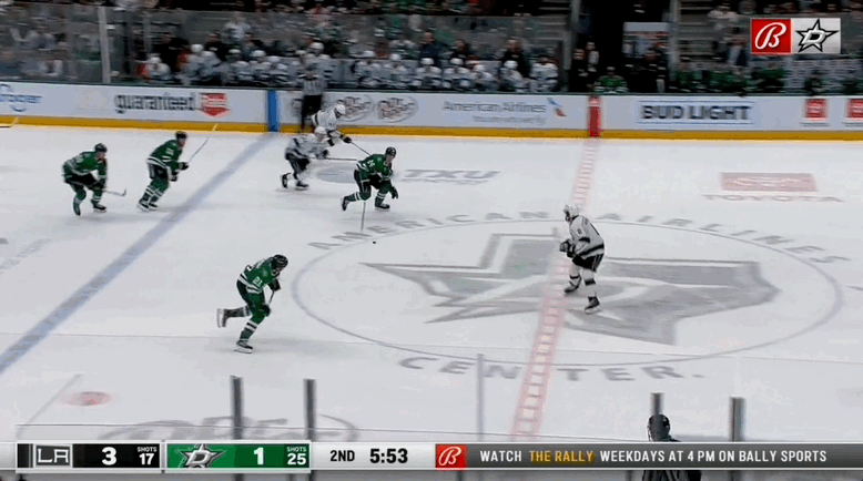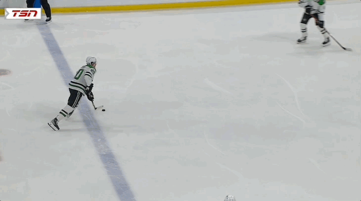 Robertson can exit with control better than most in Dallas, with a rate of 20.5 controlled exits per 60 that rank third on the team; 75 per cent of those exits are followed by successful plays. Often times, those "successful plays" happen in the neutral zone. Those plays can be passes to set up entries into the offensive zone. Hintz tends to be the puck-carrier on that line, although both wingers can skate it in, too.