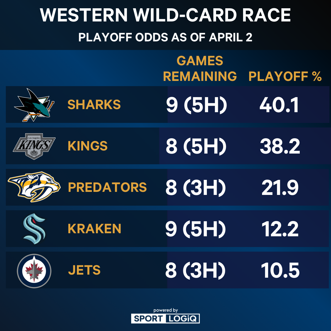 Five teams are within four points of the final playoff spot held by the Los Angeles Kings. That includes the Winnipeg Jets, who were 11 points behind at the Olympic break but have points in 14 of their past 18 games (10-4-4). Winnipeg qualifying for the playoffs would represent a remarkable turnaround after sitting last place in the NHL as recently as Jan. 8.