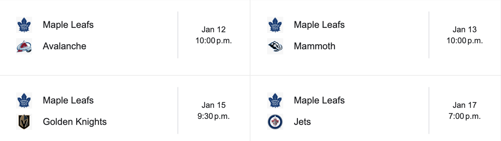 But the Leafs have played 13 home games versus just six on the road, and only a handful of games against teams that made the playoffs last season. What remains is only harder, and that's not great when you're already 15th in the conference.