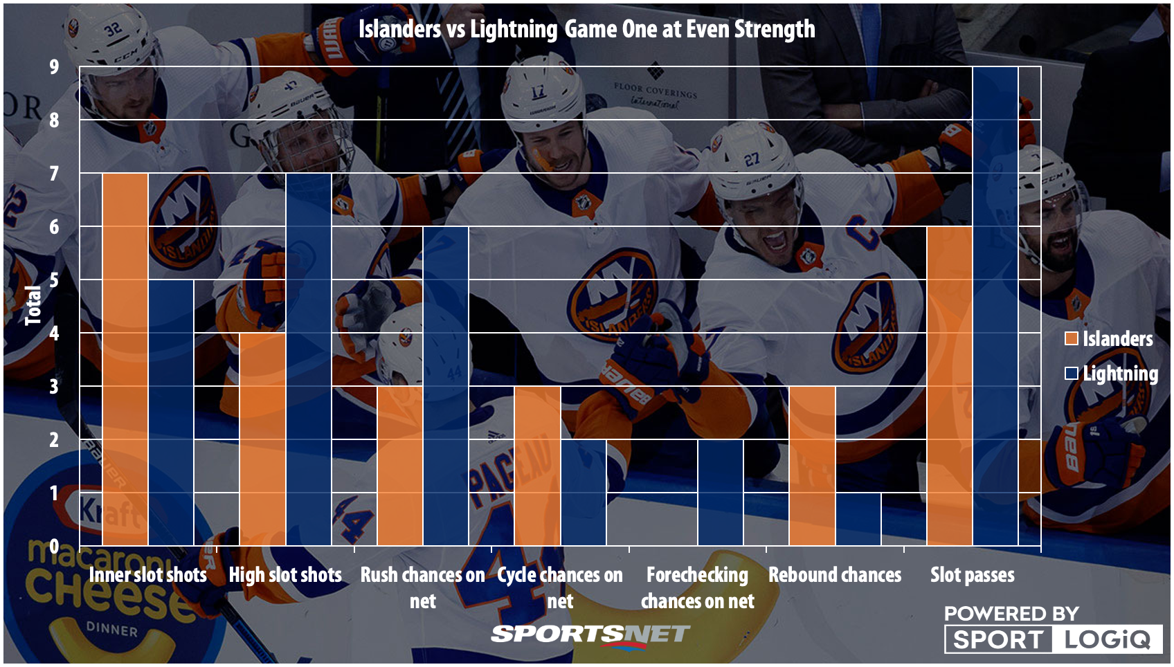 If there is an issue for the Islanders to work on heading into Game 2, it’s getting back to playing with their usual discipline in the neutral zone. At even strength they allowed 28 controlled entries by the Lightning, and while only nine of those resulted in a shot against, all nine of them were from the slot. That’s not the New York Islanders we’re used to.
