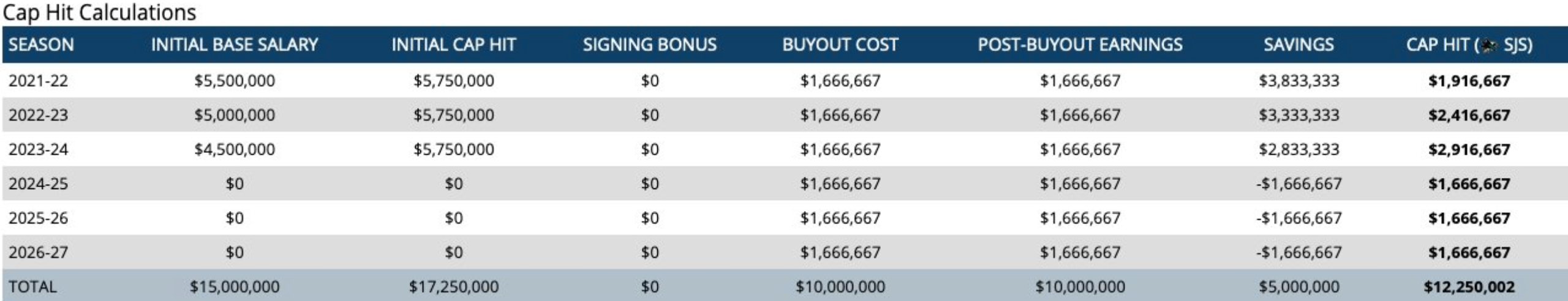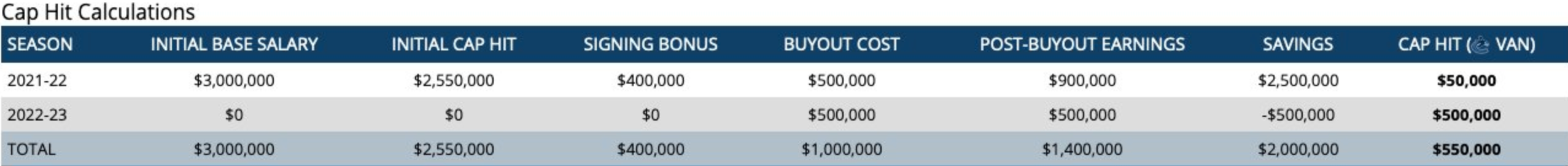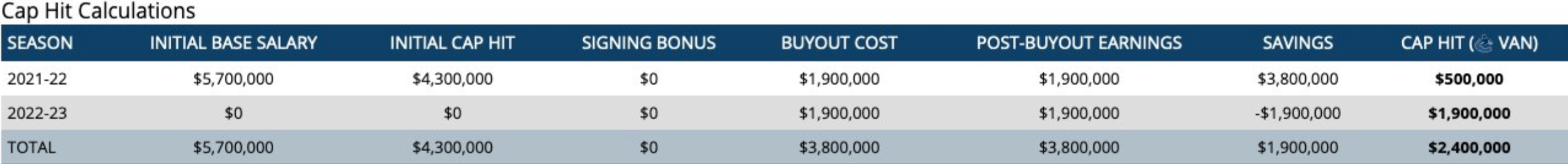 Contract status at time of buyout: $2.55 million AAV, one year remaining