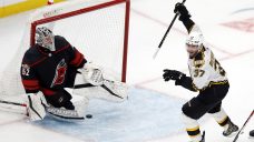 Evgeny Kuznetsov scored in the second period, picking up the puck from Oshie in the neutral zone, getting through three Flames and sliding the puck past Markstrom while falling.