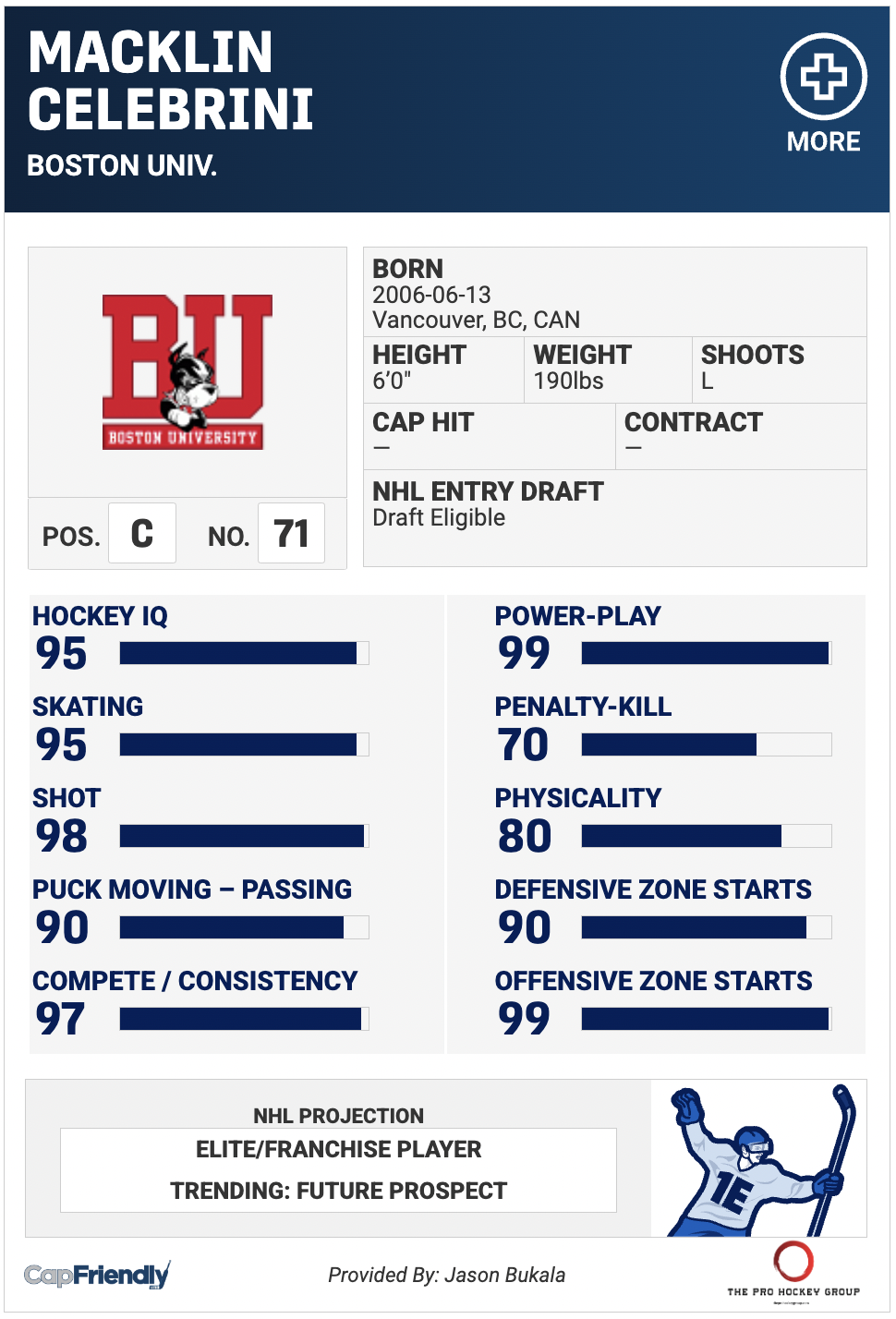No. 1: Macklin Celebrini, F, Boston University (NCAA)