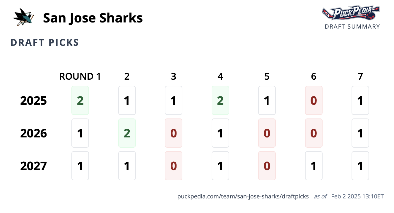 The Sharks now own two first-round picks in the upcoming draft, unsurprising for a rebuilding outfit. The Sharks are reconstructing their organization with a “draft and develop” strategy and it's never a bad idea to load up with draft capital.