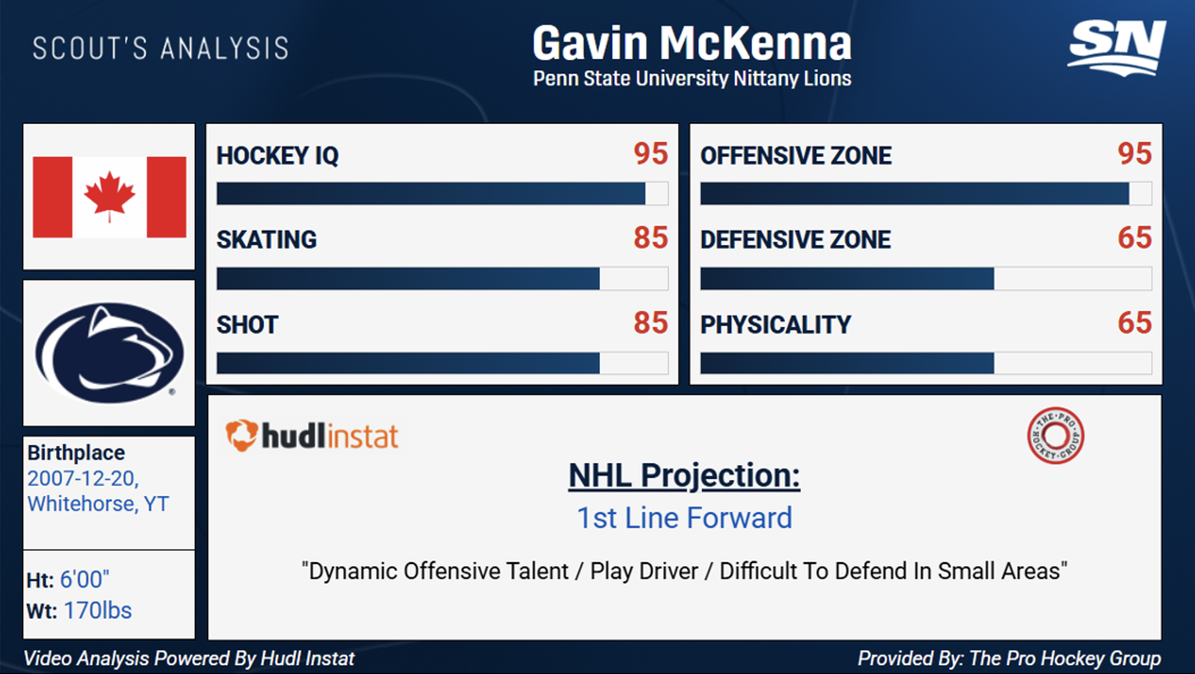 No. 2: Gavin McKenna, LW, 6-foot, 170 pounds, Penn State (NCAA)