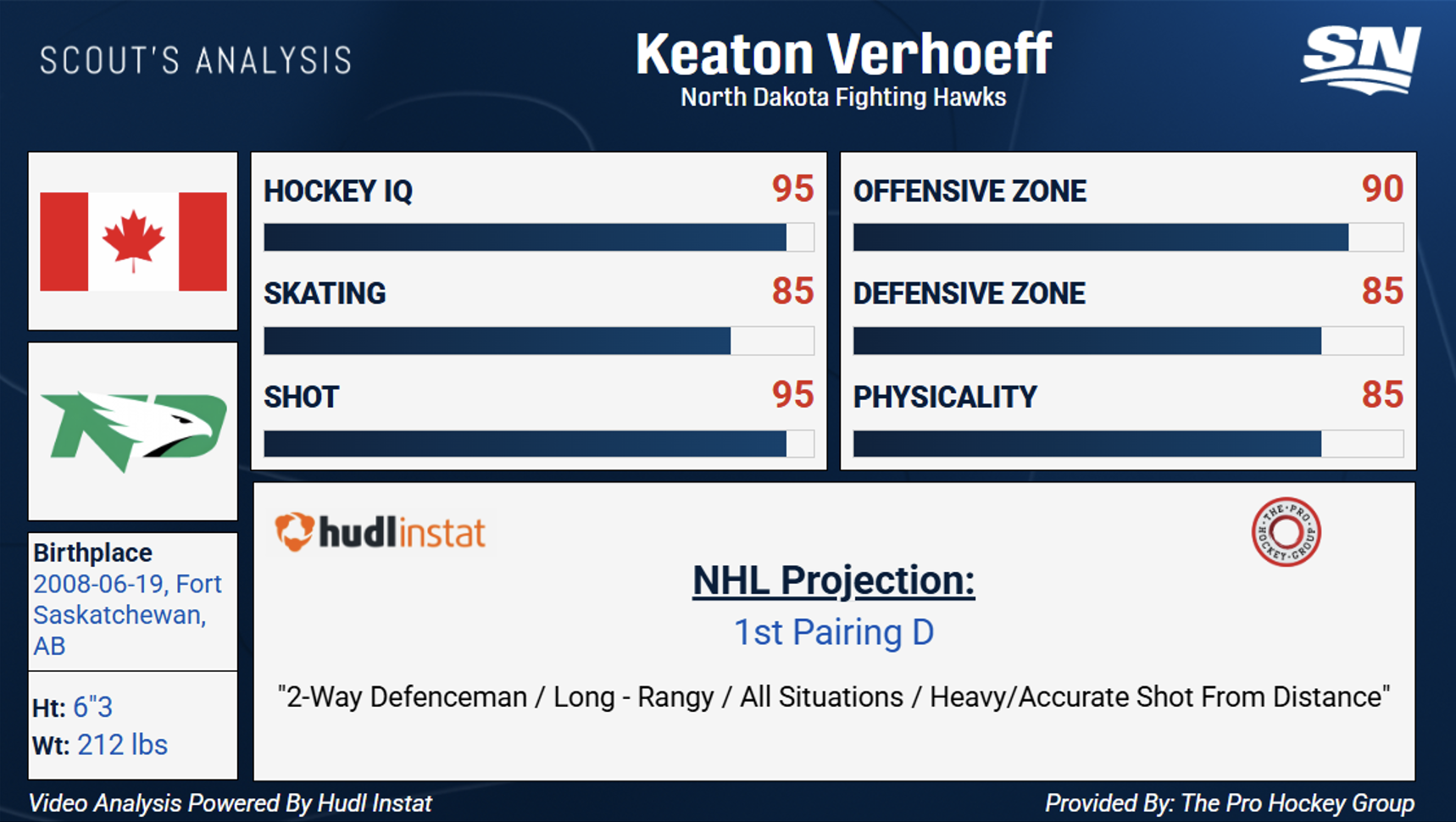 No. 4: Keaton Verhoeff, D, 6-foot-3, 212 pounds, North Dakota (NCAA)
