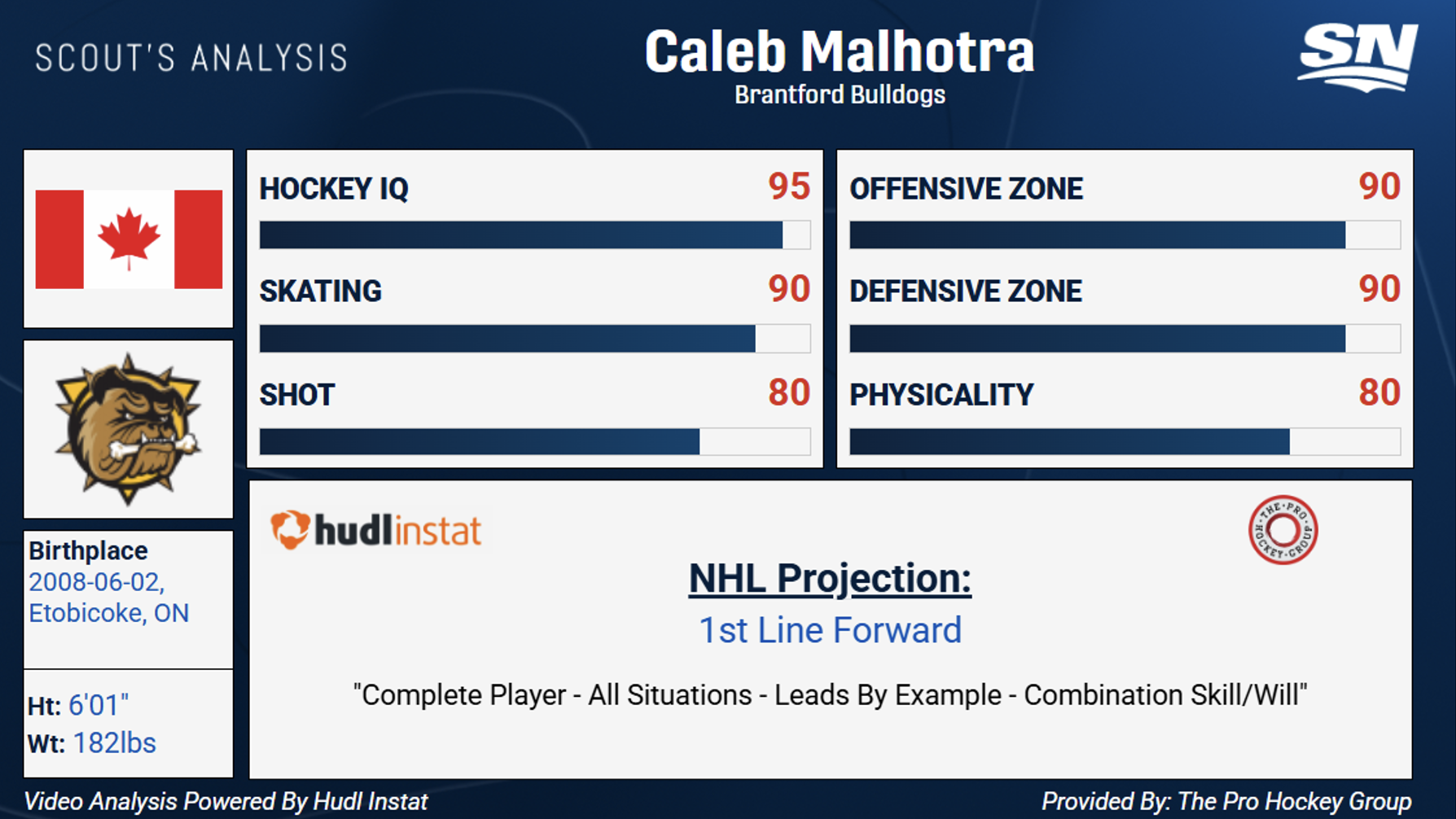 Malhotra is part of the reason why the Brantford Bulldogs are one of the top-ranked teams in the CHL. He’s the second-leading scorer on a very deep team and is relied upon to contribute in a variety of roles.