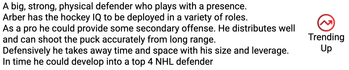 PROJECTION: He will either be a Top 6 NHL forward or a 13th forward