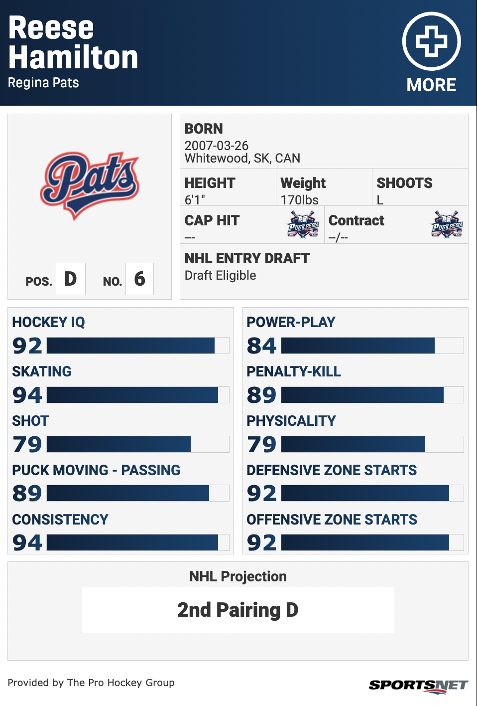 No. 32: Reese Hamilton, D, 6-feet, 172 pounds, Regina Pats (WHL)