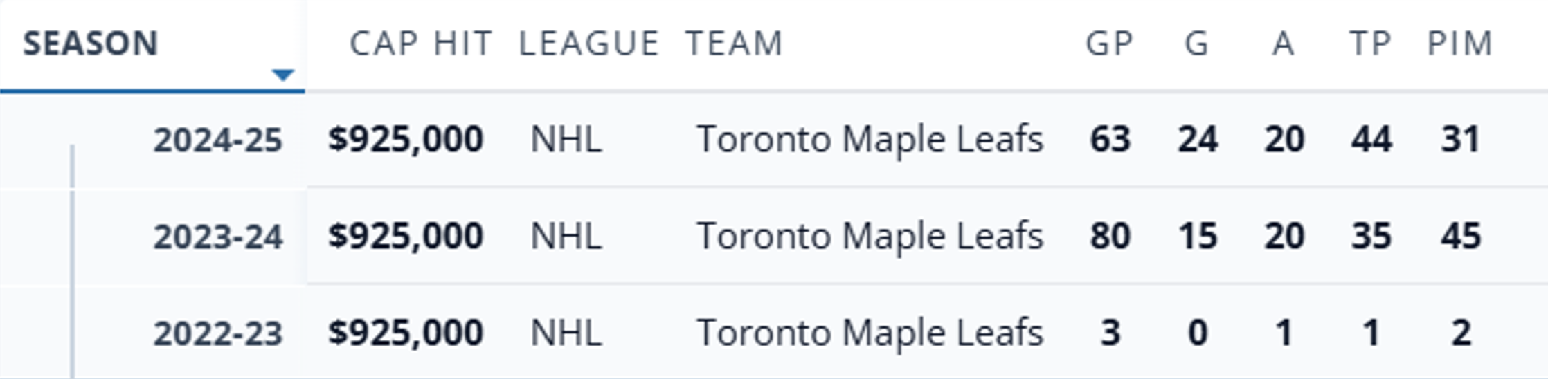 Knies is a pending restricted free agent. If Toronto doesn't get him signed to an extension before the start of free agency their first order of business will be to tender his qualifying offer. He'll end up signing a much larger contract than that, but his qualifying offer is set at $874,125.