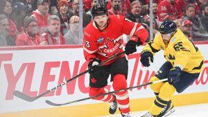 Before exiting, the 26-year-old picked up an assist on Travis Hamonic's opening goal
