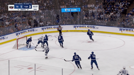 Tampa Bay wins the next draw, and suddenly the Leafs can’t make a play. The building has “Oh no, here we go again” energy.