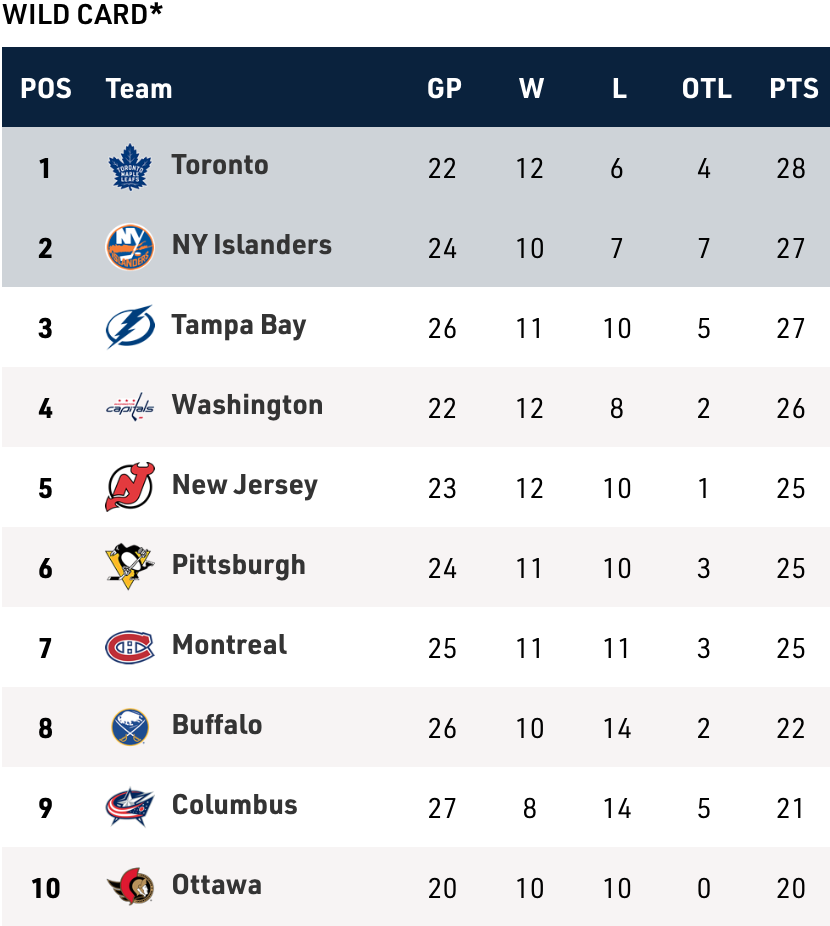 The craziest part is the Buffalo Sabres are one of the sub-.500 teams, and frankly I don’t think they’re that bad. If they got red hot for a month and played themselves into wild card contention by year's end, it would not shock me. While we can safely write off Columbus and, probably, Montreal, even the Canadiens are 11-11-3, have some talent on the roster, and aren’t handing anyone two free points.
