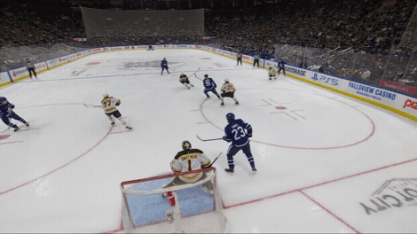 His traffic in front leads to a goal for Morgan Rielly: