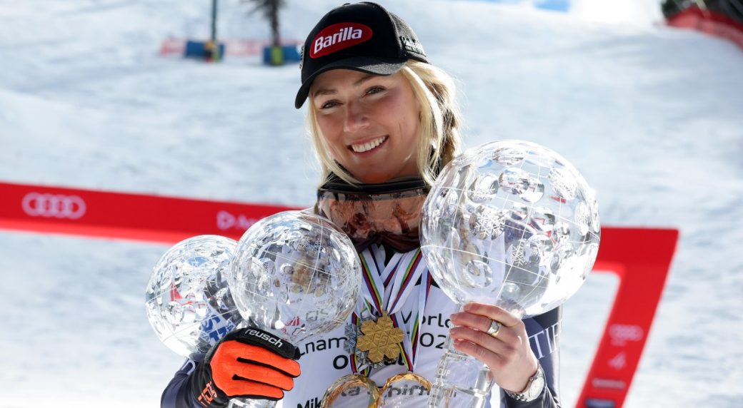 Later, Shiffrin posed for photos with men's overall champion Marco Odermatt, who set the men's record of 2,042 points. It's the first World Cup season in which both the women's and men's overall champion finished on more than 2,000 points.