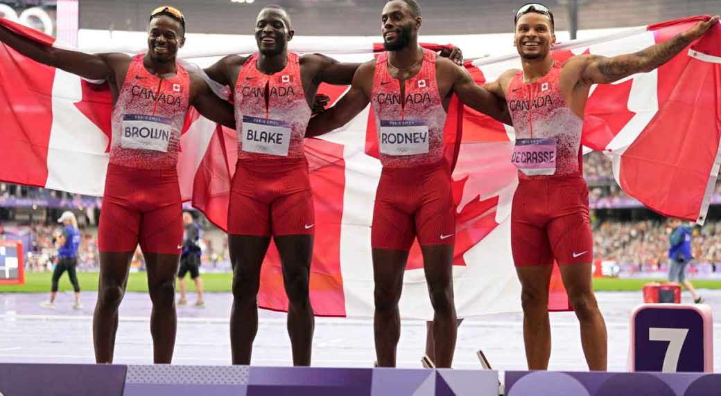 It is the third consecutive Olympic medal for Canada in this event after silver in 2021 and bronze in 2016. It is Canada’s first gold medal in the event since Donovan Bailey, current Team Canada chef de mission Bruny Surin, Robert Esmie and current track team coach Glenroy Gilbert stood on top of the podium in 1996 on a steamy summer night in Atlanta.