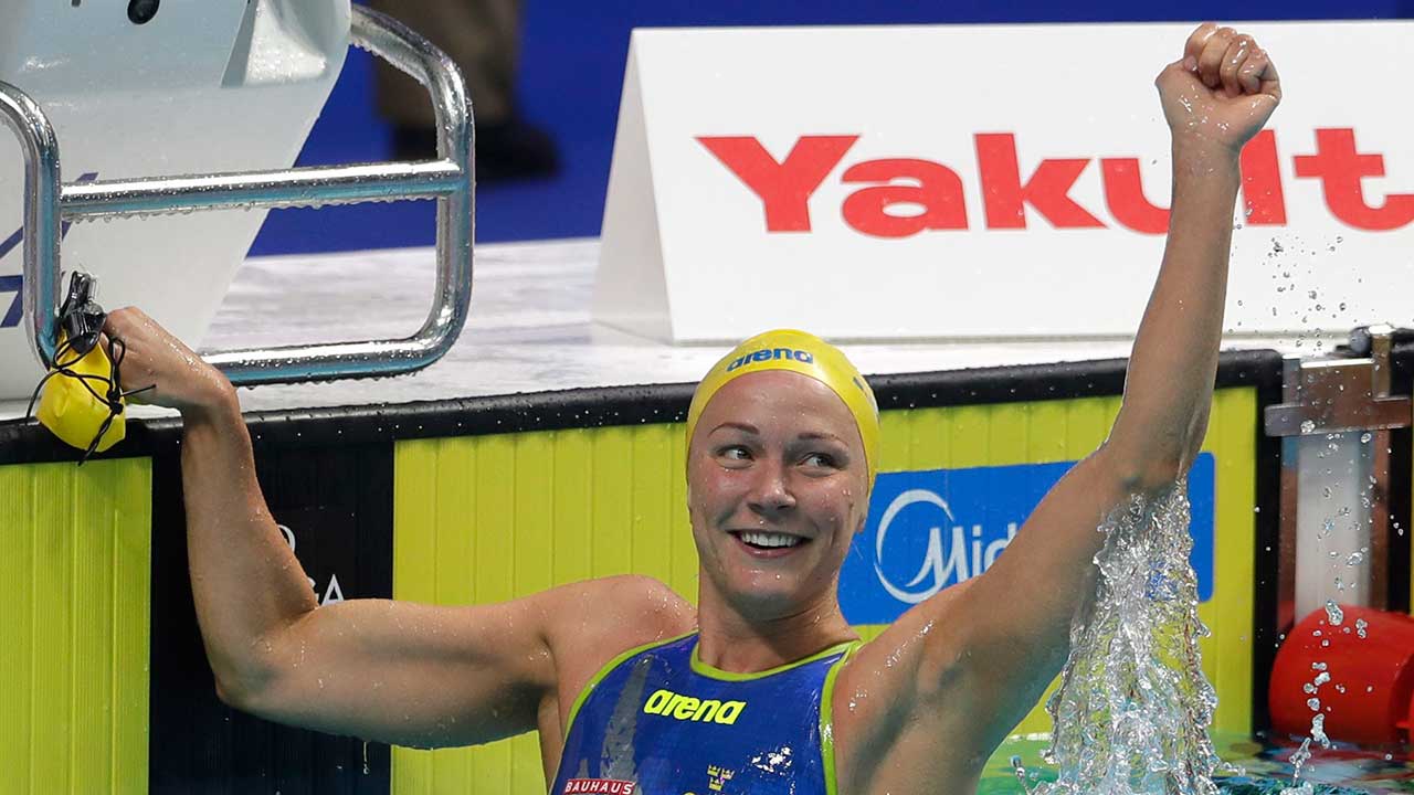 Sjostrom won the 50-meter butterfly in the first event Saturday. She then returned about an hour later in the semifinals of the 50 freestyle to break the world record. Her time of 23.67 seconds eclipsed the mark of 23.73 set by Germany’s Britta Steffen in a rubber suit at the 2009 worlds in Rome.