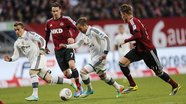 “It’s a quality that Bayern scores one goal from one chance,” Nuremberg coach Gertjan Verbeek said. “The momentum was then gone. The first half cost us a lot of energy and the belief wasn’t quite as strong. After the quick second goal it was practically impossible.”