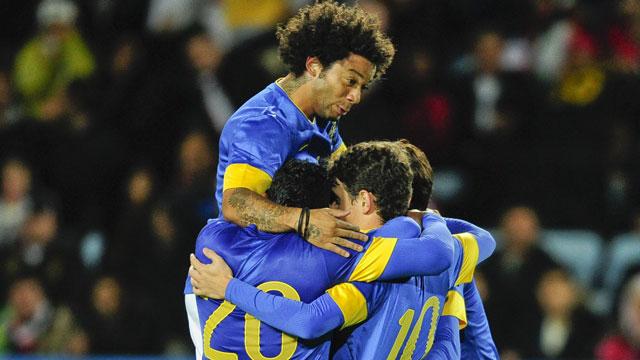 The Real Madrid midfielder, who last played an international when Brazil was beaten in the quarterfinals at the 2010 World Cup by the Netherlands, added the third goal in the 47th minute at Swebank Stadium.