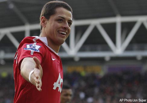 The Mexico striker turned in Nani’s low cross after 17 minutes and completed a one-two with Wayne Rooney in the 74th to take his tally for his first season in England to 12 goals.