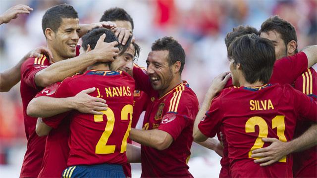 Adrian Lopez made a case for starting up front for the Spanish at the Euros in place of the injured David Villa by opening the scoring in the 64th minute on his international debut, before earning the penalty that was converted by Santi Cazorla 16 minutes from time.