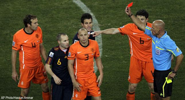 Spain won 1-0 in the July 11 final in Johannesburg, on Andres Iniesta’s extra-time goal after the Netherlands were reduced to 10 players.