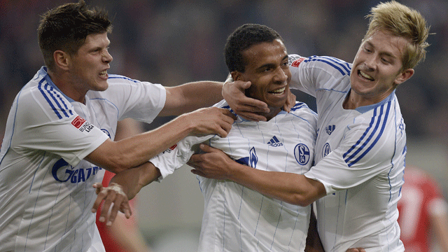 Klaas-Jan Huntelaar became the first player to score against Duesseldorf this season when he opened the scoring out of nothing with a tremendous strike in the 13th minute. The Dutchman controlled a throw-in on his chest and surged past three defenders before firing an unstoppable effort inside the right post.