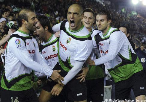 Valencia defender David Navarro, teammate Ricardo Costa and Santander midfielder Mehdi Lacen were all sent off in the second half.