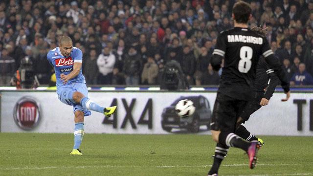 As Napoli began to settle down, the action shifted to the other end and Inler scored with a long shot that deflected in off the head of defender Leonardo Bonucci into the corner of the goal past outstretched Gianluigi Buffon.