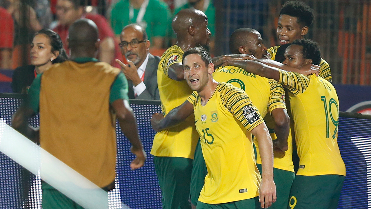 South Africa wasn’t only about defending. Bafana Bafana also forced a series of saves from el-Shenawy in the Egypt goal, including a full-stretch fingertip stop from Percy Tau’s curling free kick.