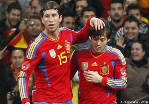 Spain: Iker Casillas, Sergio Ramos, Gerard Pique, Raul Albiol, Joan Capdevila (Alvaro Arbeloa, 56), Sergio Busquets, Xabi Alonso (David Silva, 76), Xavi Hernandez (Santi Cazorla, 56), Andres Iniesta, Pedro Rodriguez (Fernando Llorente, 82), David Villa (Fernando Torres, 56).