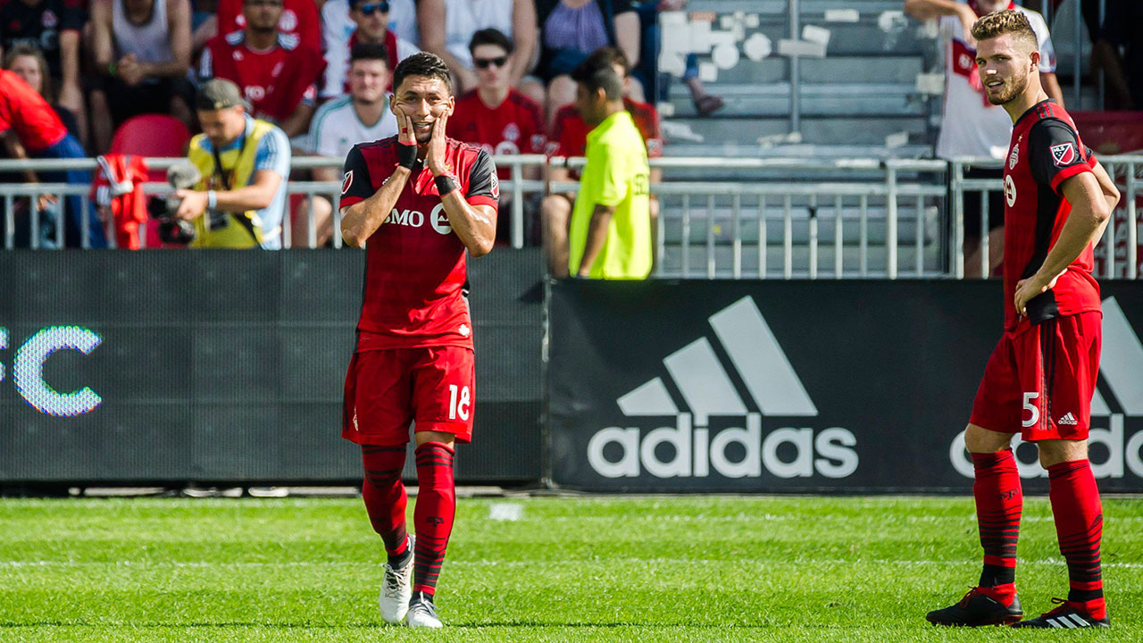 Fatigue caught up with Toronto as the half wore on, as sloppy giveaways and harried defending became the order of the day. Tajouri-Shradi pounced on a nonchalant clearance by Toronto defender Nick Hagglund, blasting a laser beam of a shot from 22 yards out that whipped by Bono.