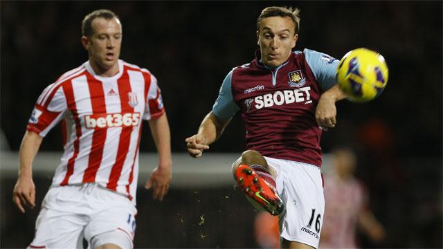 West Ham almost hit the front when several players had shots in target within the area in the 58th minute, but Stoke was able to block them all.