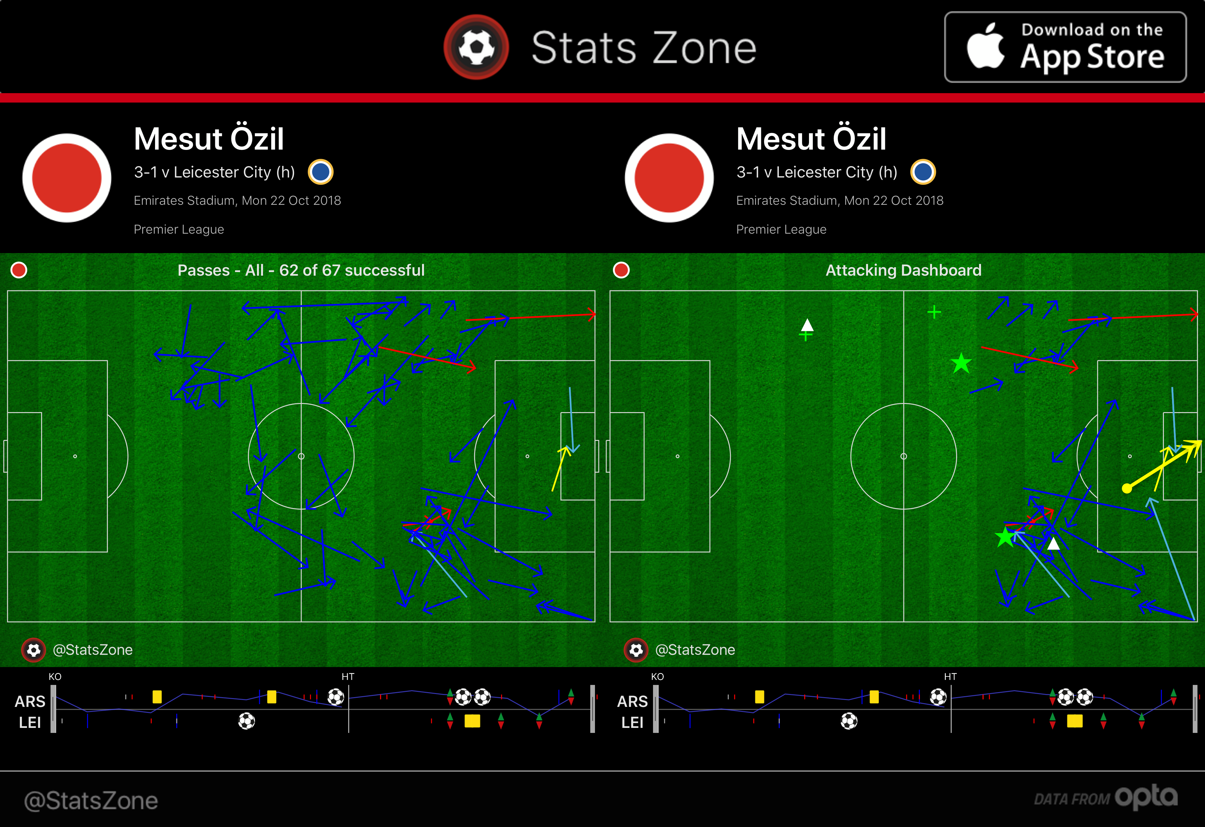xG map for Arsenal – Leicester City. The first half was unimpressive, and then Ozil dropped back into midfield and Arsenal were stupid good after the break. pic.twitter.com/CEuUjOUfyC