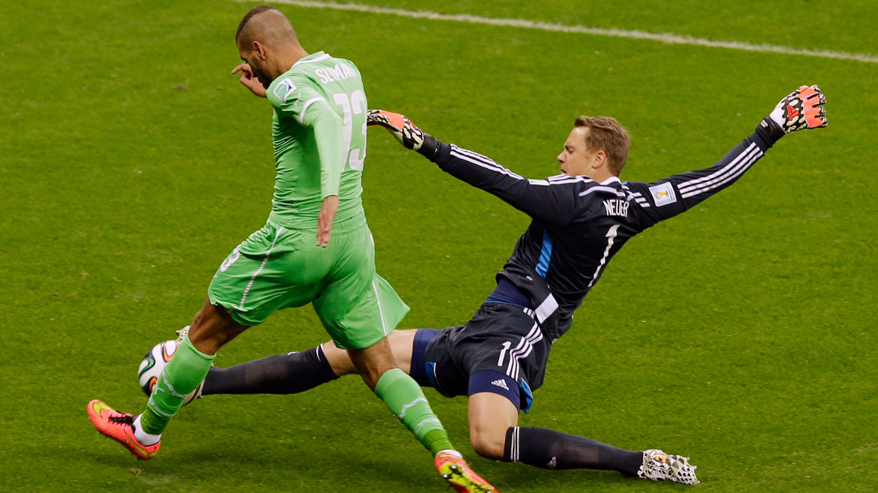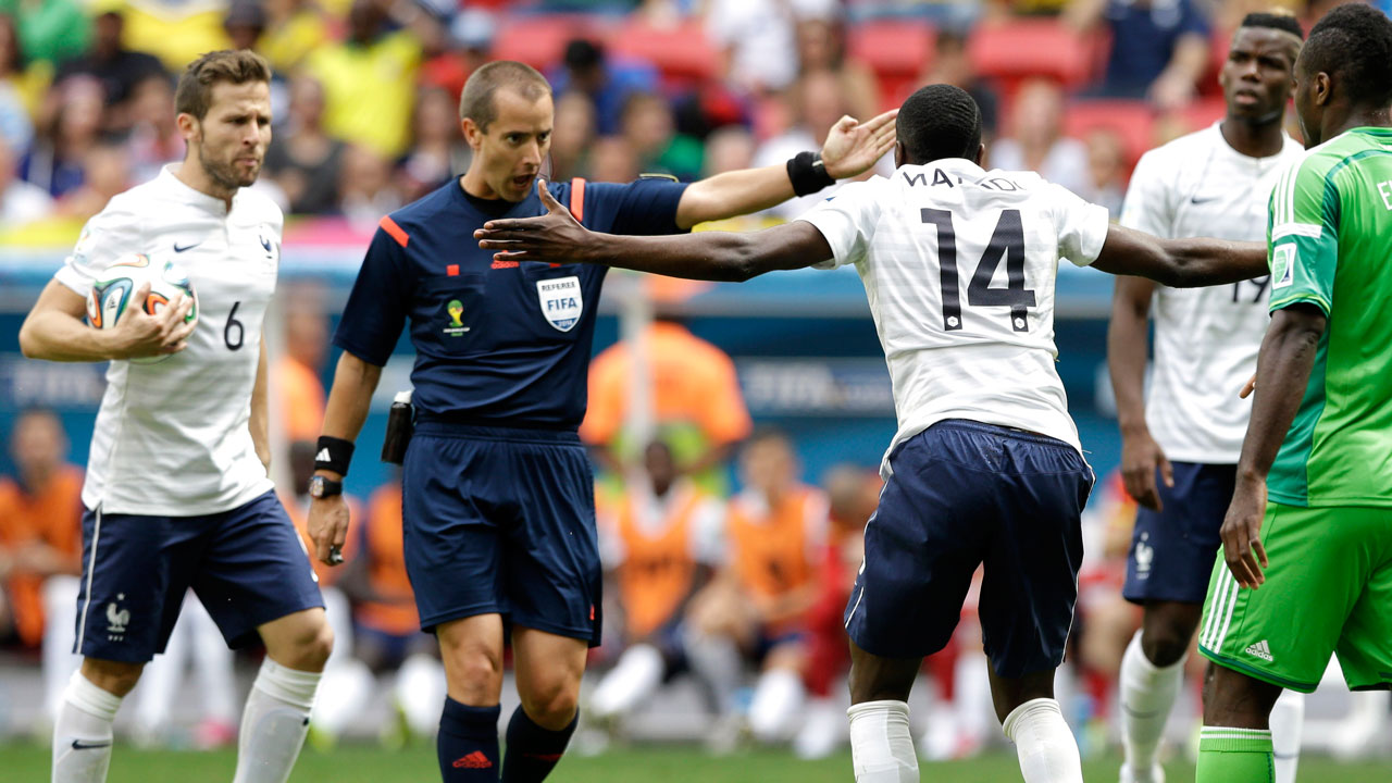 Germany’s Bastian Schweinsteiger, center, reacts after missing a goal during the World Cup Round of 16 match versus Algeria in Porto Alegre, Monday, June 30, 2014.Germany’s Thomas Muller reacts after missing a goal during the World Cup Round of 16 match between Germany and Algeria in Porto Alegre, Monday, June 30, 2014.Germany’s Thomas Mueller, left, heads the ball at the Algerian goal during the World Cup Round of 16 match between Germany and Algeria in Porto Alegre, Monday, June 30, 2014.Referee Mark Geiger calls a foul on France’s Blaise Matuidi (14) during the World Cup Round of 16 match between France and Nigeria in Brasilia, Monday, June 30, 2014.French supporters before the World Cup Round of 16 match between France and Nigeria in Brasilia, Monday, June 30, 2014.France’s Paul Pogba (19) celebrates with teammates after scoring the opening goal during the World Cup Round of 16 match versus Nigeria in Brasilia, Monday, June 30, 2014.Nigeria’s goalkeeper Vincent Enyeama makes a save on France’s Paul Pogba, left, during the World Cup Round of 16 match in Brasilia, Monday, June 30, 2014.Nigeria’s goalkeeper Vincent Enyeama, left, saves a shot by France’s Karim Benzema during the World Cup Round of 16 match in Brasilia, Monday, June 30, 2014.Germany’s manager Joachim Loew, left, watches his team with Algeria’s manager Vahid Halilhodzic during the World Cup Round of 16 match in Porto Alegre, Monday, June 30, 2014.Germany’s goalkeeper Manuel Neuer blocks a shot by Algeria’s Islam Slimani, left, during the World Cup Round of 16 match in Porto Alegre, Monday, June 30, 2014.