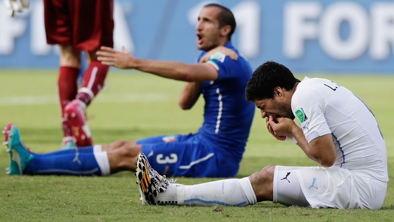 “After several days of being home with my family, I have had the opportunity to regain my calm and reflect about the reality of what occurred during the Italy-Uruguay match,” the statement said. “(The) truth is that my colleague Giorgio Chiellini suffered the physical result of a bite in the collision he suffered with me.”