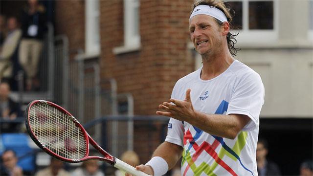 LONDON — The shocked silence gave way to boos from the Queen’s Club crowd and then to chants to "play on," but David Nalbandian’s disqualification in the final for accidentally injuring a line judge when he kicked a small barrier stood.