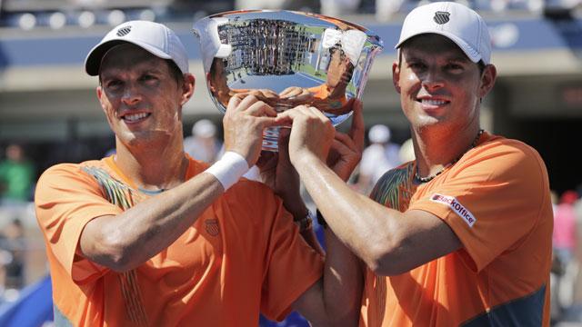 The American twins won the U.S. Open men’s doubles final in straight sets Friday for a 12th Grand Slam championship. They had been tied with Australian greats Todd Woodbridge and Mark Woodforde for the most in the Open era, which started in 1968.