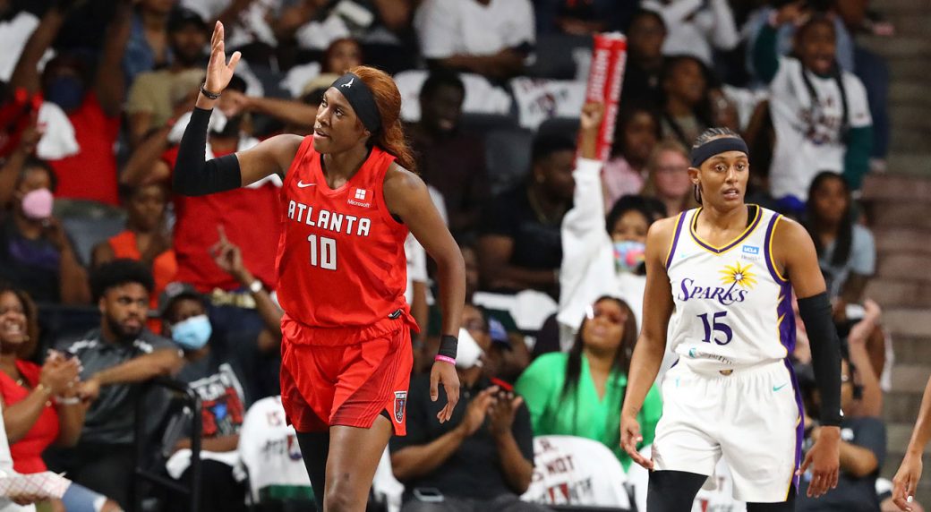 Atlanta led 40-39 at halftime as both teams shot under 38% from the field. Jordin Canada led Los Angeles with 12 points and Howard had 10.