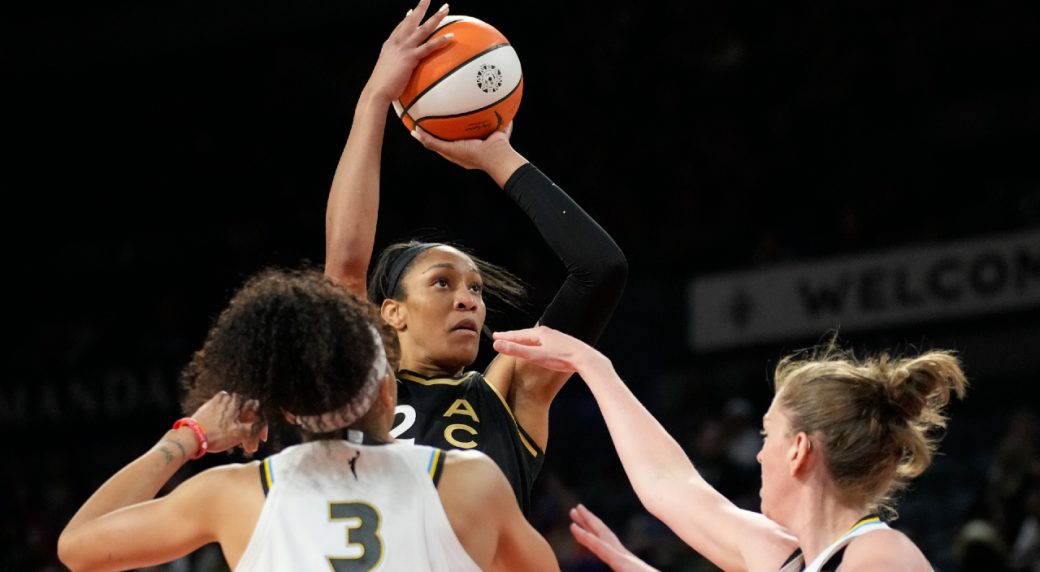 The win means the two teams split their head-to-head meetings so home-court for the WNBA Commissioner’s Cup championship game will come down to the second tiebreaker. That’s point differential in the cup games and the Aces have a huge lead over the Sky with two games left to play.